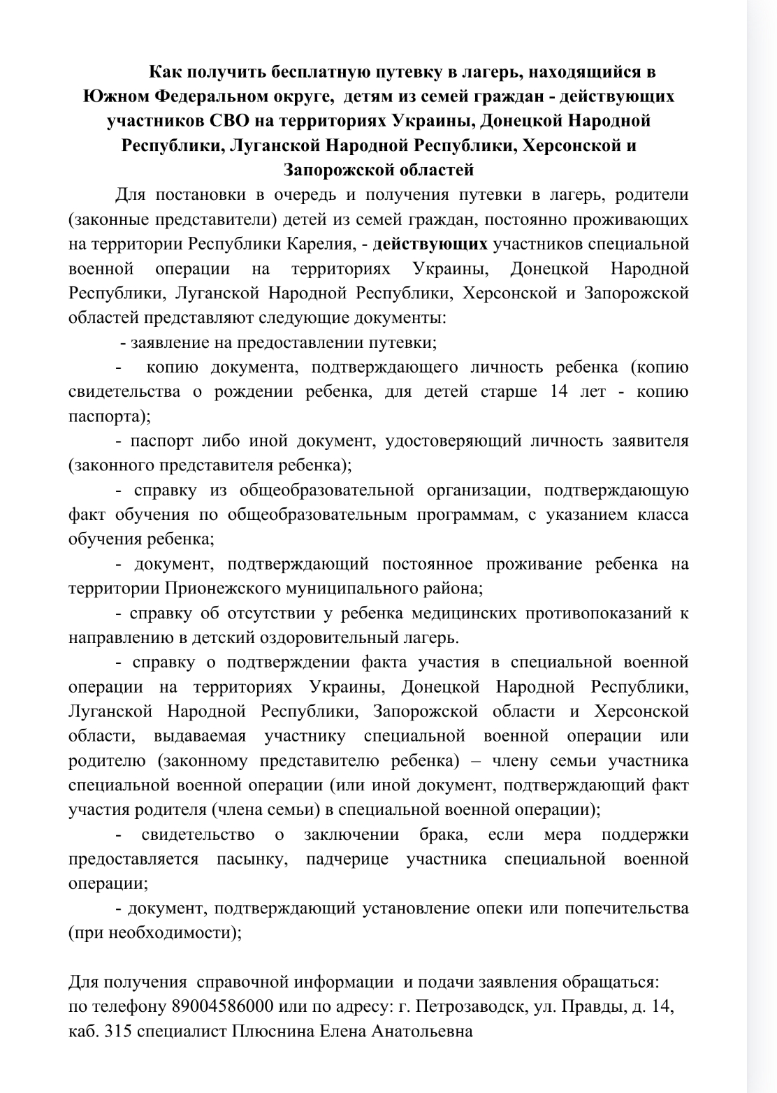 ул. Правды, д.31, г. Петрозаводск, предварительно согласовав время приема по телефонам: 89004572174, 89004572441, 89114082729, 89004572363.